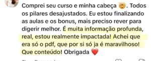 Ela achou que era só o Ebook! E se impressionou com o conteúdo! Entender o que está desajustado é o primeiro passo para a mudança!